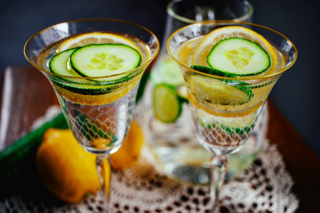 Zusammen mit Wasser ergeben Gurke und Zitrone also eine unschlagbare Kombination. Und das Beste: Man kann das Ganze auch noch super easy selbst machen! Einfach ein Stück Gurke und etwas Zitrone in dünne Scheiben schneiden und in eine Karaffe mit Wasser füllen.