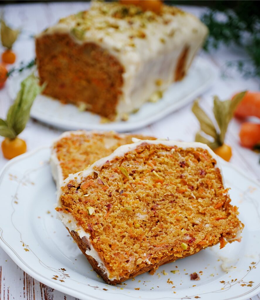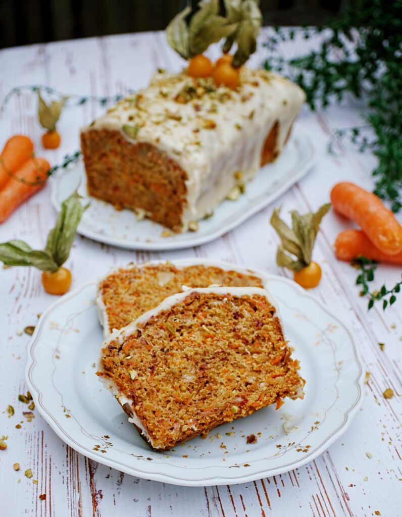 Die Karotten in diesem Kuchen sorgen nicht nur für ein köstliches Aroma, sondern auch für eine natürliche Feuchtigkeit, die ihn über mehrere Tage hinweg saftig hält. Am zweiten Tag entfaltet sich sein Geschmack, auch durch das Marzipan, sogar noch intensiver. Durch eine sorgfältige Verpackung und Aufbewahrung im Kühlschrank bleibt er problemlos 3 bis 4 Tage lang frisch und behält seinen leckeren Geschmack.
